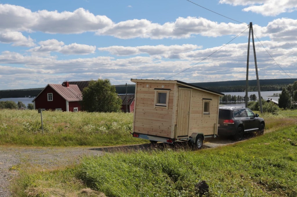 Eilen kuvasimme tuoreinta valmistunutta vaunua Kuusamossa. Se on kevythirrestä tehty asuntovaunu. Sisällä on wc johon mahtuu borttapotta. Lisäksi asiakas aikoo laittaa sängyn sinne. Muuta vaunuun ei juuri mahdukkaan. Tämä on ensimmmäinen autolla vedettävä vaunu minkä yrityksemme on valmistanut. Tämän paino on alle 1200 kg.