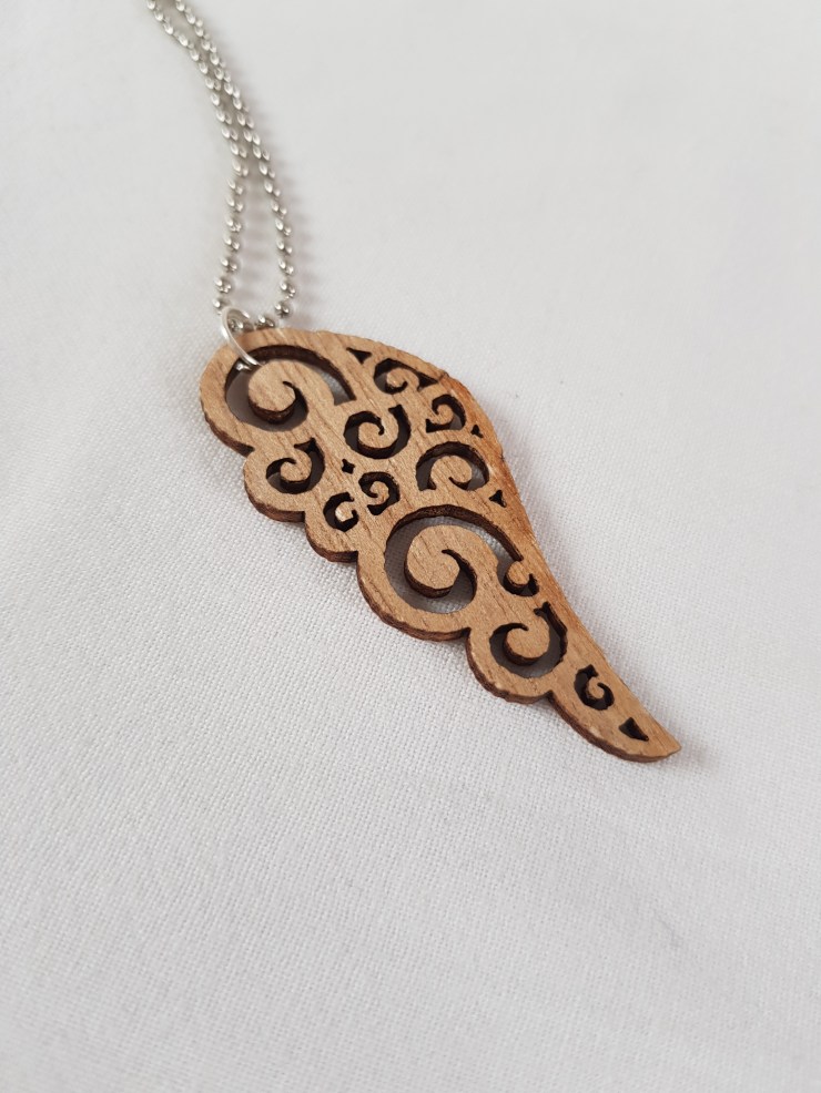 Siipi-kaulakoru puu, korkeus n. 6,5cm. 17€/kpl sis. 24% alv. Löytyy yhteensä 4 kpl, kaksi kumpaakin mallia.