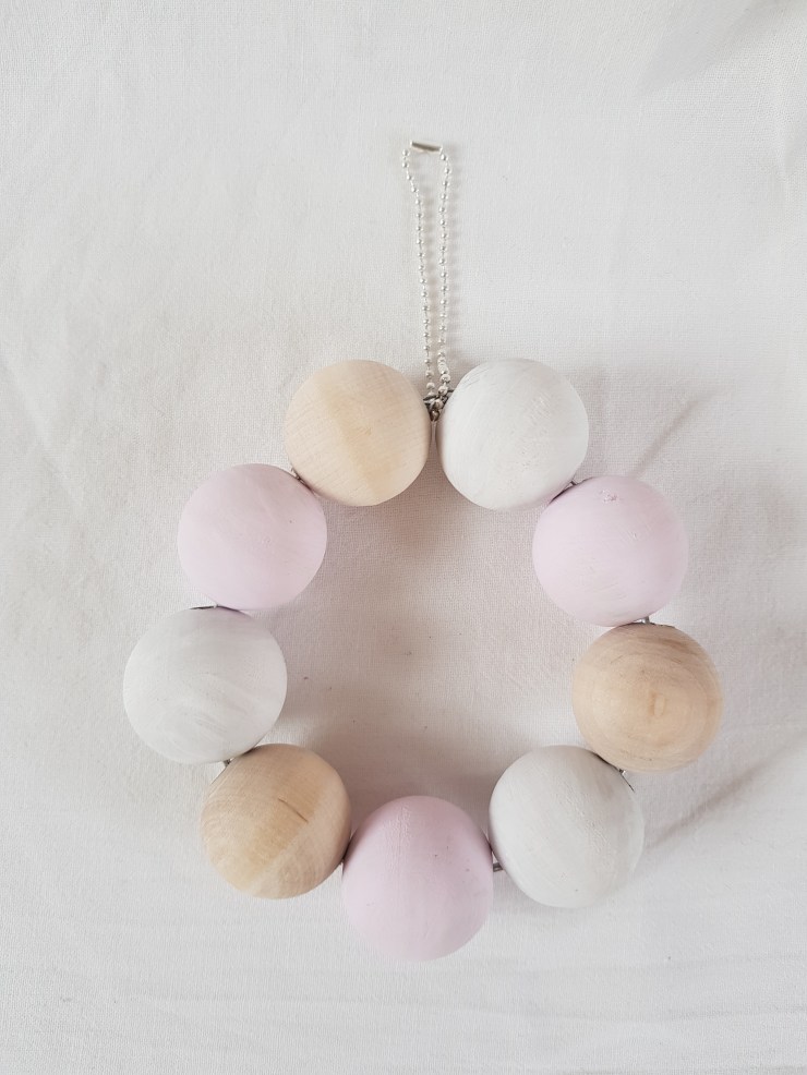 Pyyherengas puupalloilla, halkaisija n.11 cm. 20€/kpl sis. 24% alv.