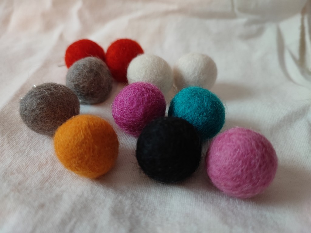 Huopapallo korvakorut 10€/pari sis. 24% alv. 19 pariin olemassa tarvikkeet. 8 väriä olemassa.